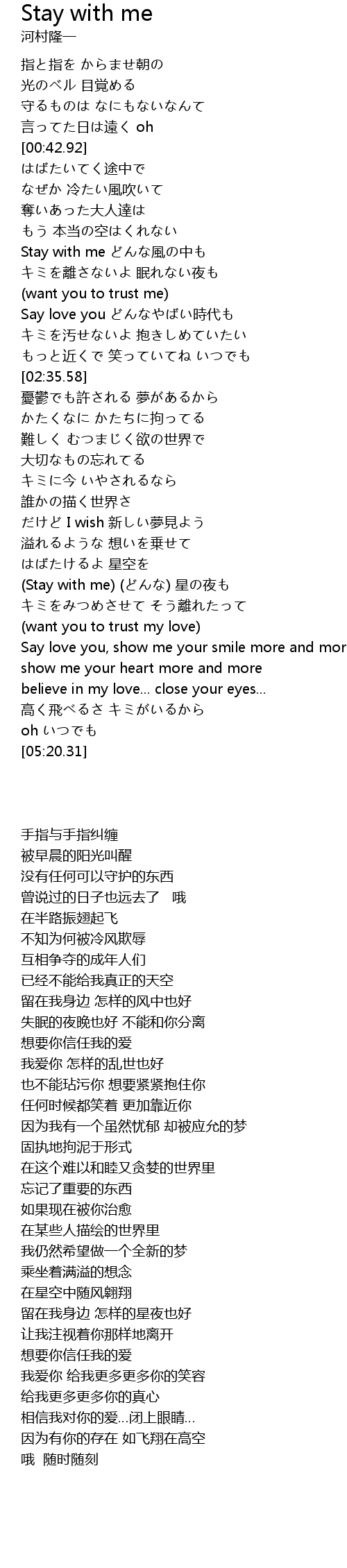 | [04:05.06] | (Stay with me) (どんな) 星の夜も |
