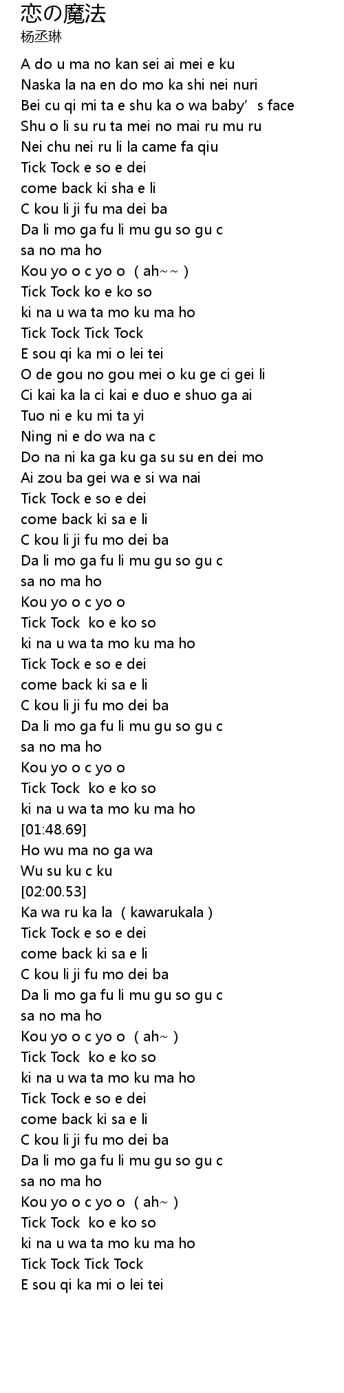 | [02:33.27] | Tick Tock ko e ko so |