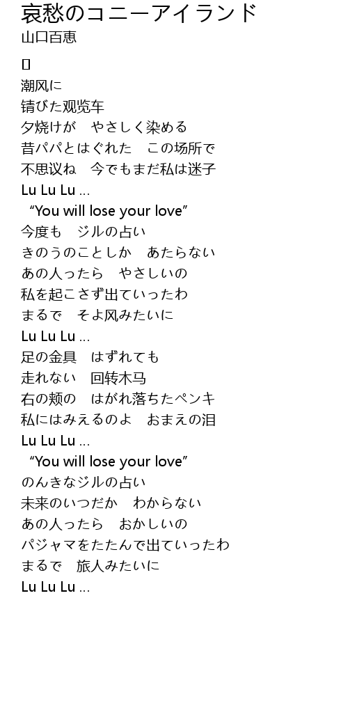 | 歌曲 | 哀愁のコニーアイランド |