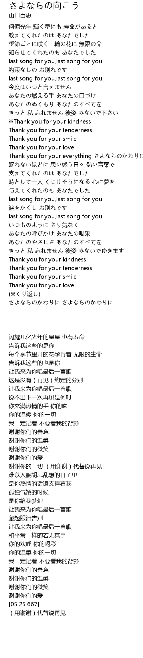 | [02:22.489] | 谢谢你的一切 (用谢谢)代替说再见 |