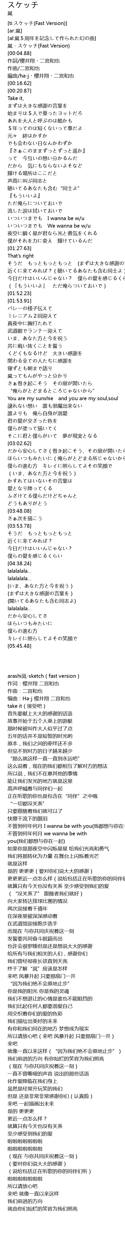 | [00:00.00] | 嵐 - スケッチ(Fast Version) |