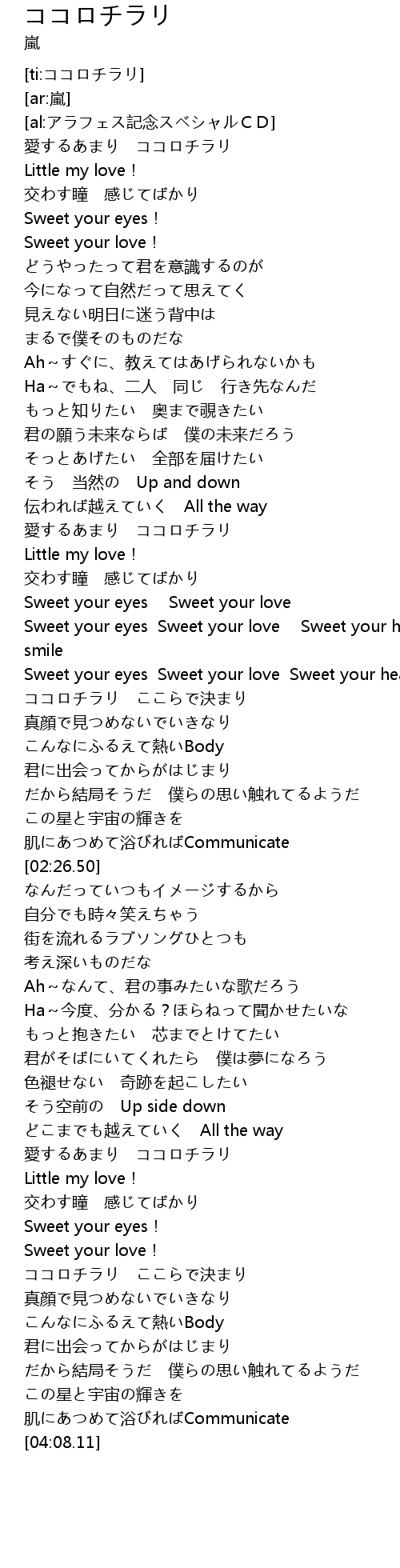 | [02:10.52] | ココロチラリ ここらで決まり |