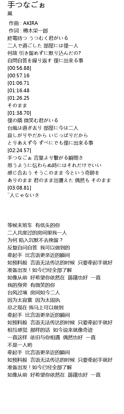 | [03:26.92][00:57.16] | shǒu yán yè jì shùn jiān |