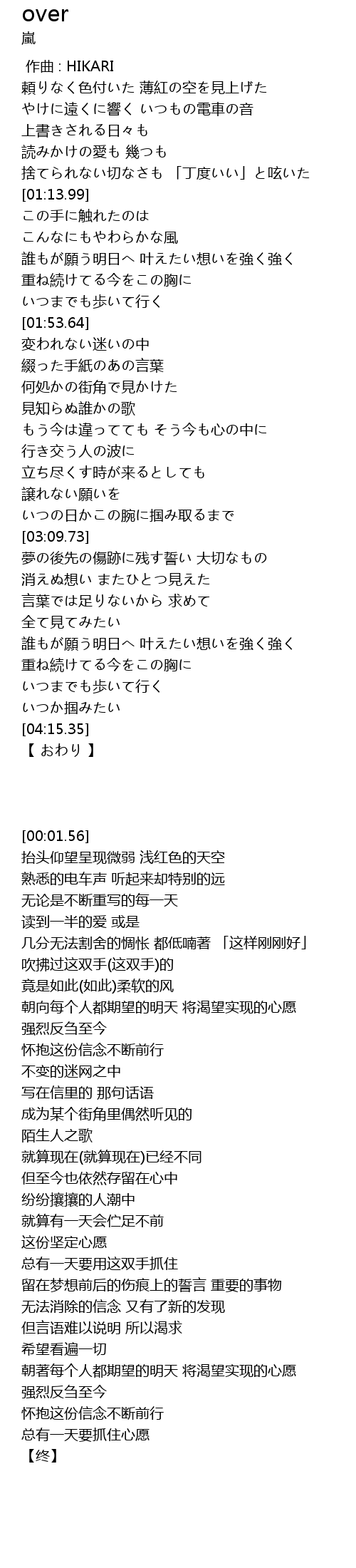 | [00:00.00] | zuo qu : HIKARI |