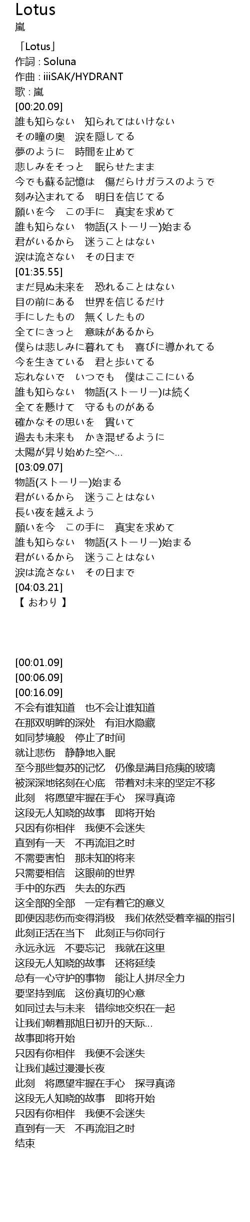 | [02:31.09] | 誰も知らない 物語(ストーリー)は続く |