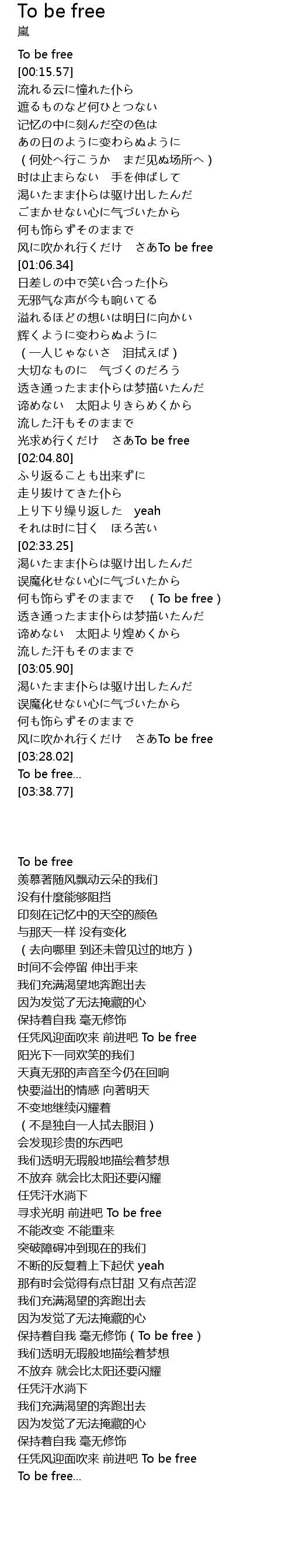 | [00:00.00] | To be free |