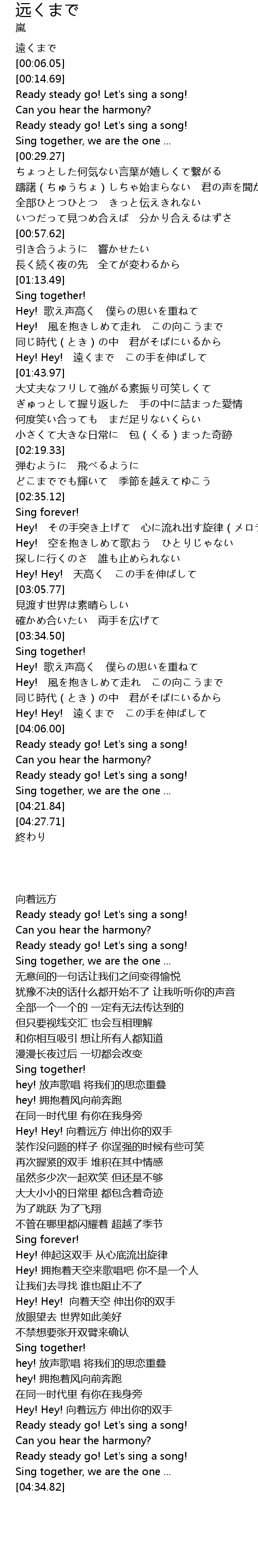 | [04:06.05] | Ready steady go! Let's sing a song! |