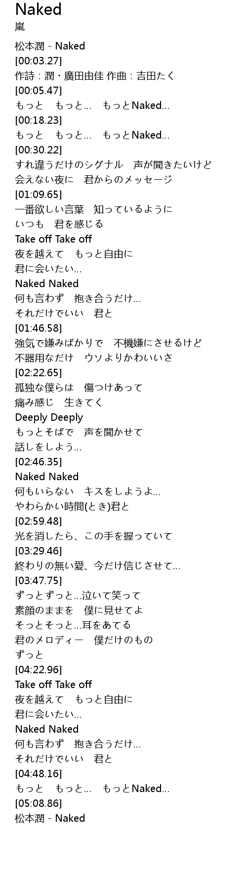 | [05:12.26] | 松本潤 - Naked |