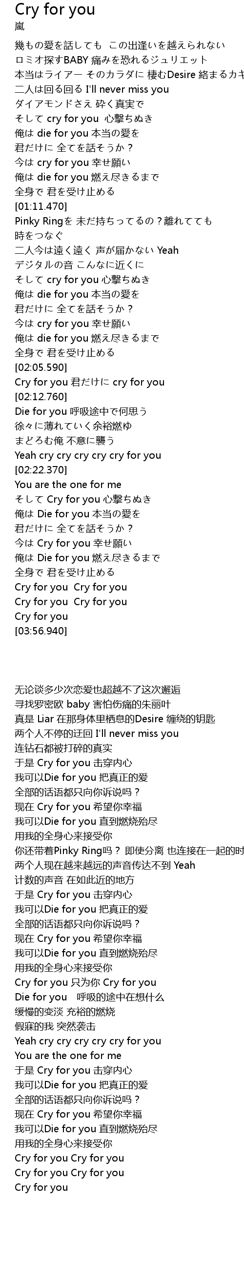 | [03:33.560] | Cry for you Cry for you |