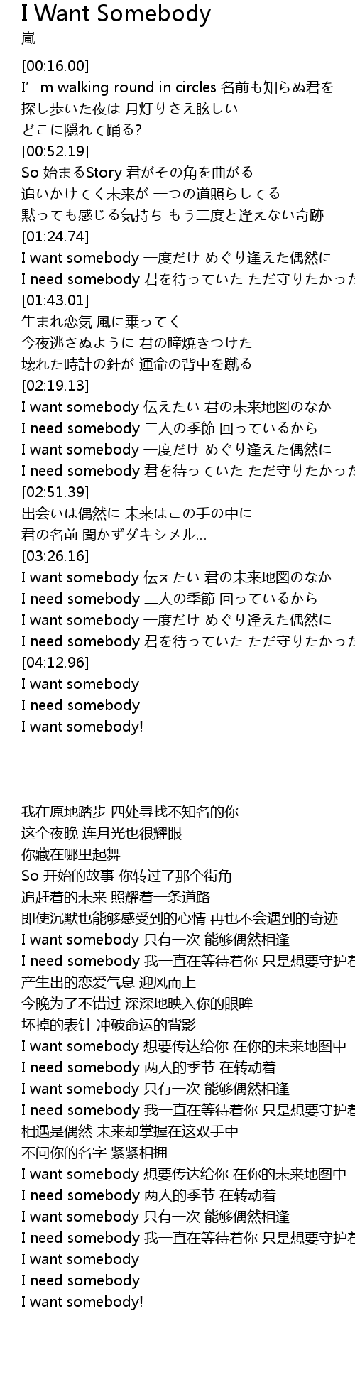 | [02:35.80] | I want somebody 只有一次 能够偶然相逢 |