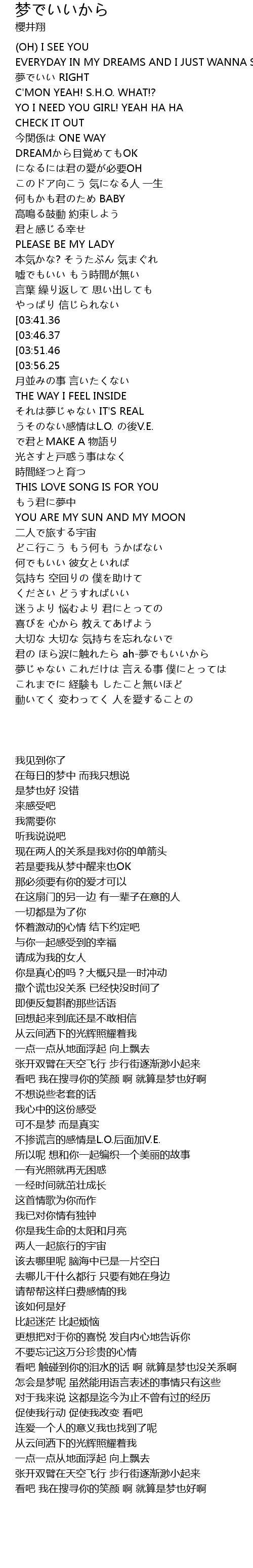 | [03:20.23] | 夢じゃない これだけは 言える事 僕にとっては |