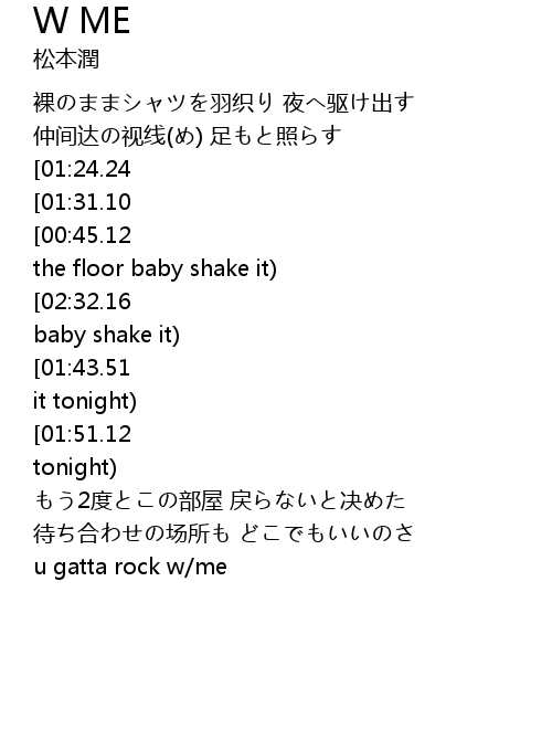 | [02:24.54][02:32.16][02:47.61][02:55.17] | rock w/me (kick it bring on the floor baby shake it) |