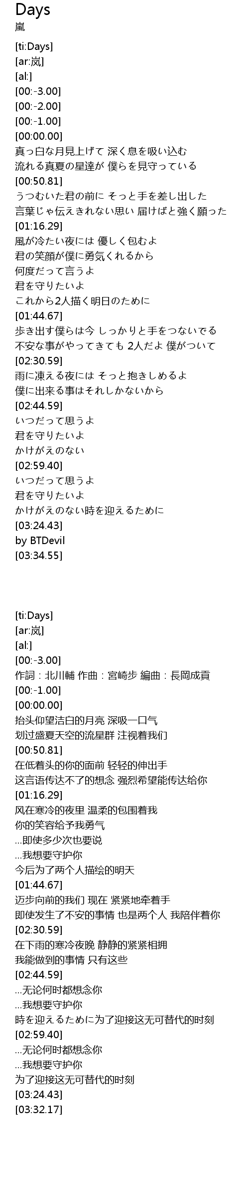 | [00:-2.00] | 作詞:北川輔 作曲:宮崎步 編曲:長岡成貢 |