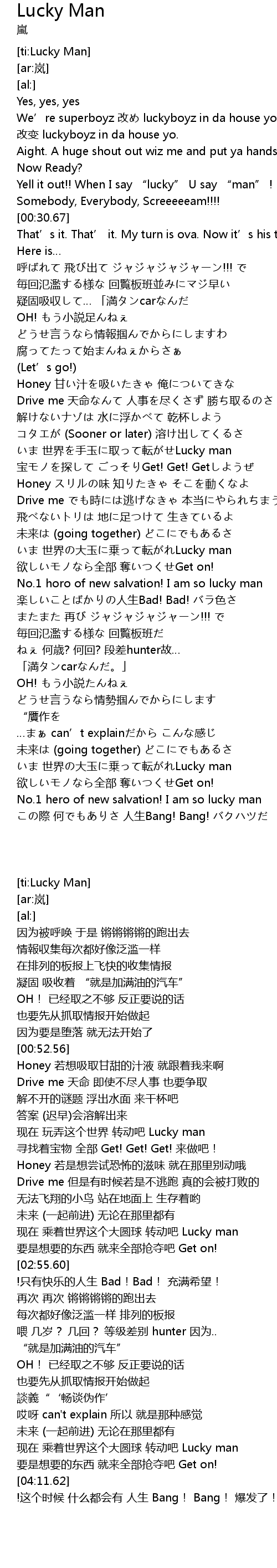 | [03:56.09] | 现在 乘着世界这个大圆球 转动吧 Lucky man |