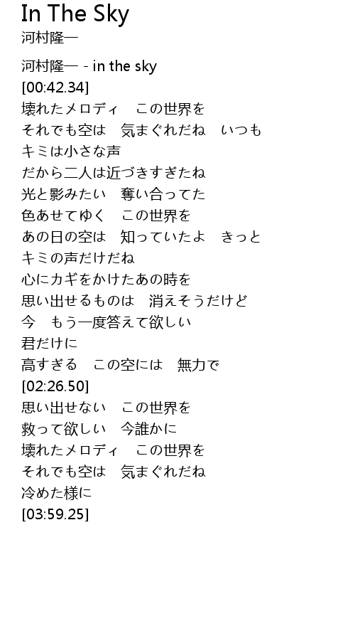 | [00:00.00] | 河村隆一 - in the sky |