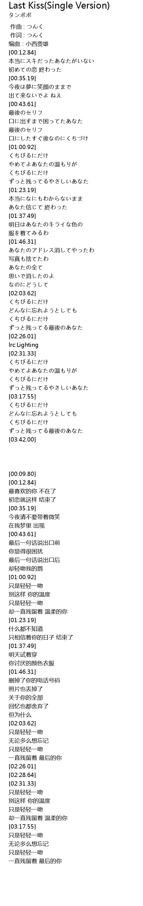 | [00:09.80] | 编曲:小西贵雄 |