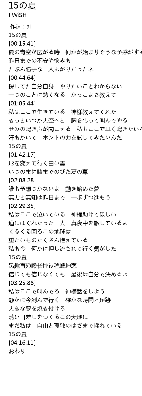 | [00:16.16] | 夏の青空が広がる時 何かが始まりそうな予感がする |