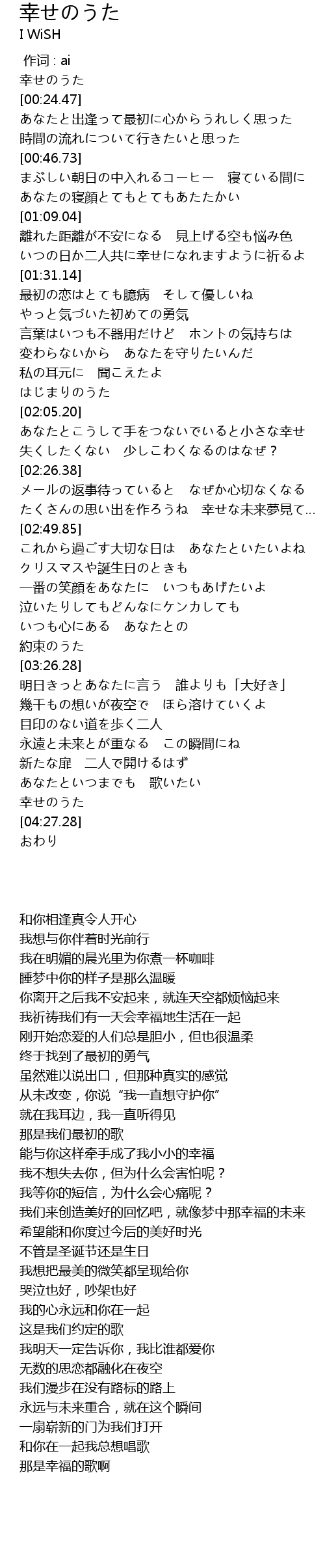 | [01:20.44] | いつの日か二人共に幸せになれますように祈るよ |