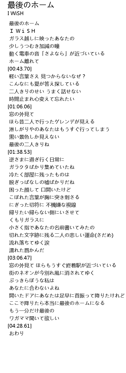 | [04:06.77] | ここで降りたら本当に最後のホームになる |