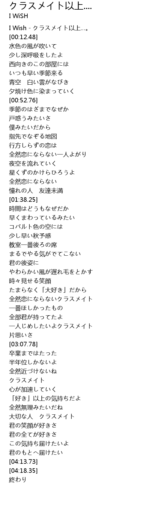 I Wish - クラスメイト以上…。 |