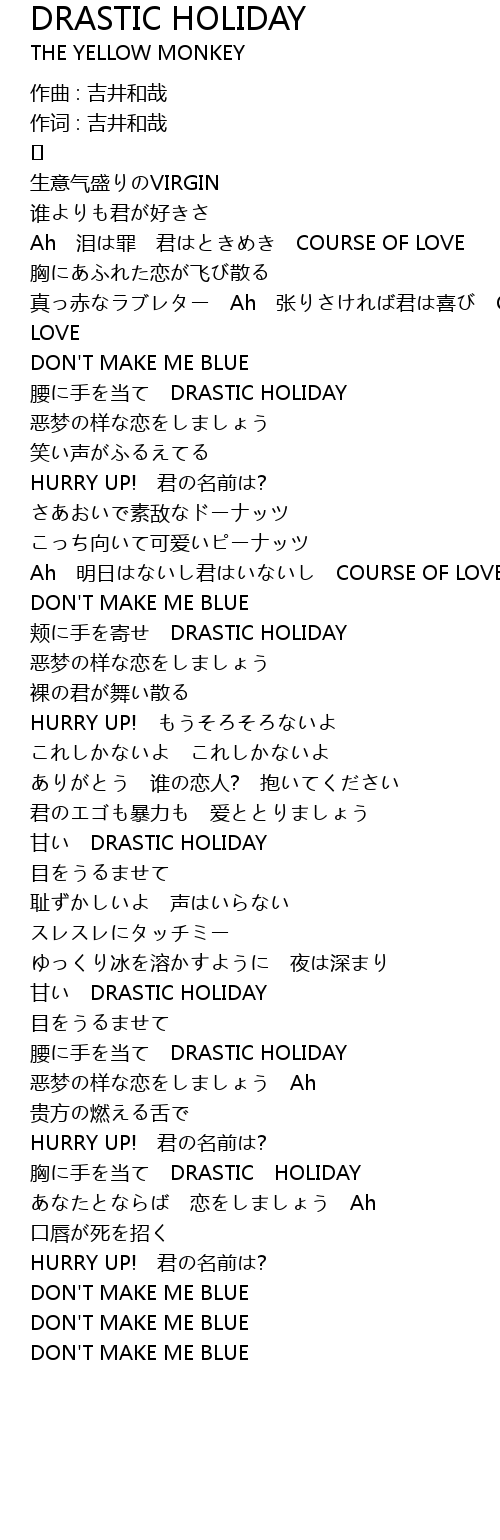 | 腰に手を当て DRASTIC HOLIDAY | |