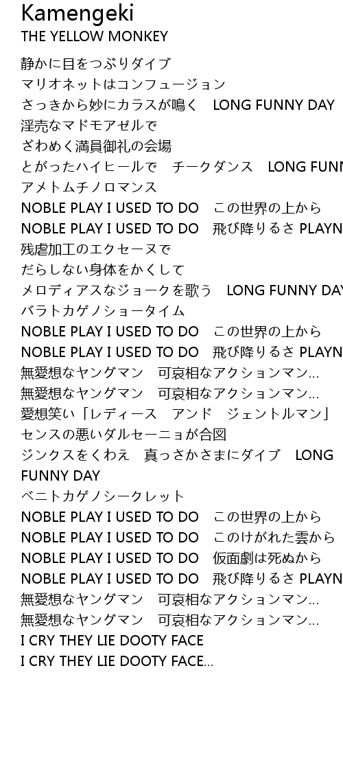 | [04:04.567] | NOBLE PLAY I USED TO DO 飛び降りるさ PLAYN' ON! |