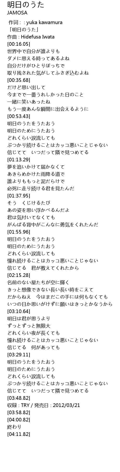 | [03:53.82] | shōu lù TRY fā mài rì 2012 03 21 |