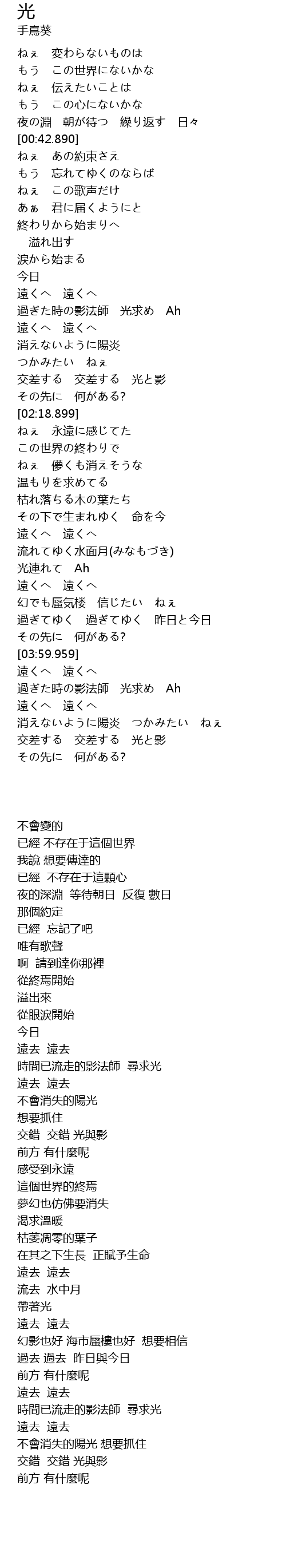 | [03:16.999] | 遠去 遠去 |