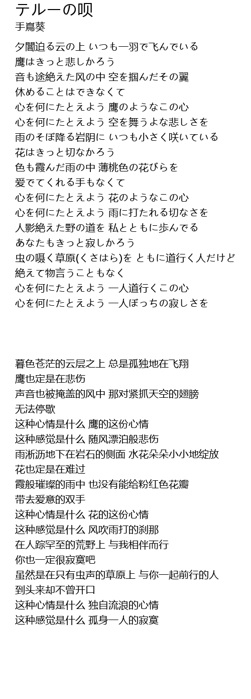 | [00:44.330] | 心を何にたとえよう 鹰のようなこの心 |
