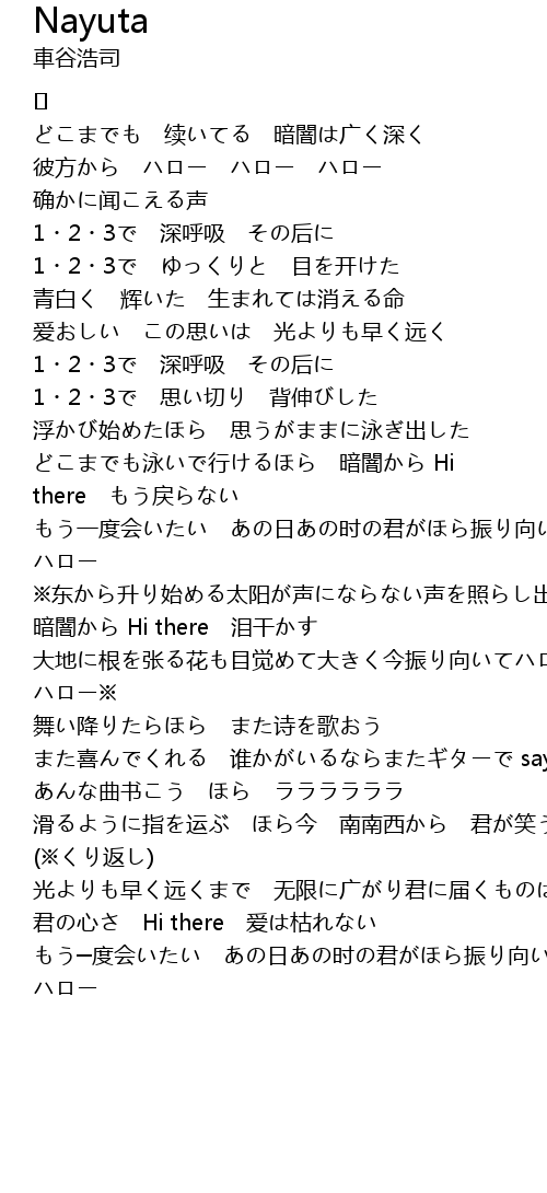 | どこまでも泳いで行けるほら 暗闇から Hi there もう戻らない | |
