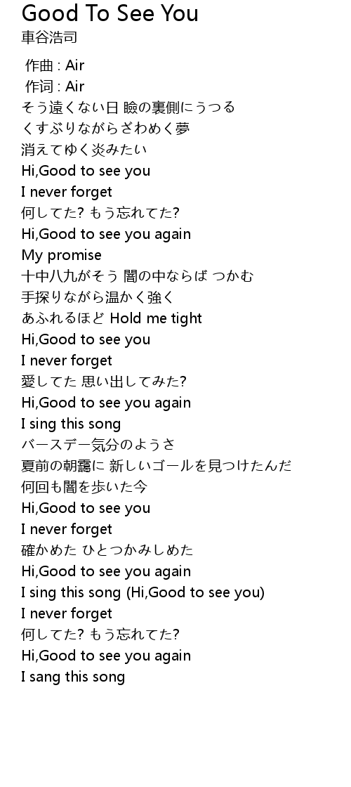 | [02:43.40] | I sing this song Hi, Good to see you |