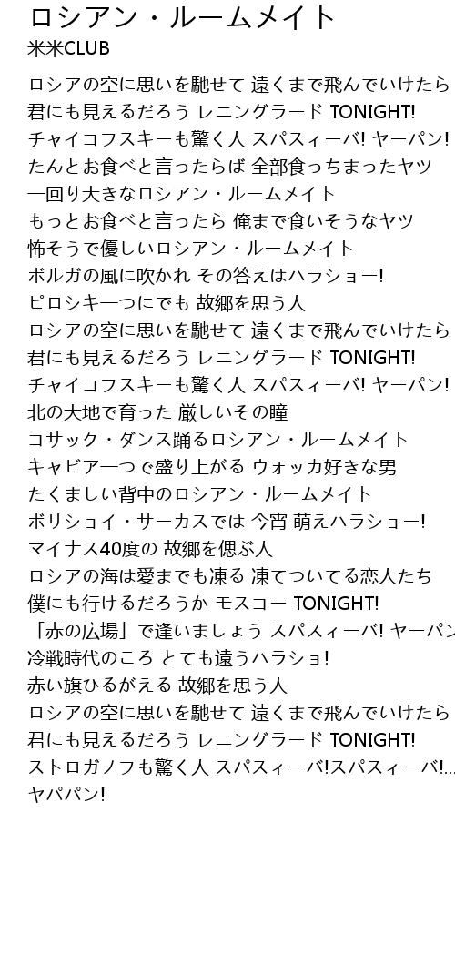 | 歌曲 | ロシアン・ルームメイト |