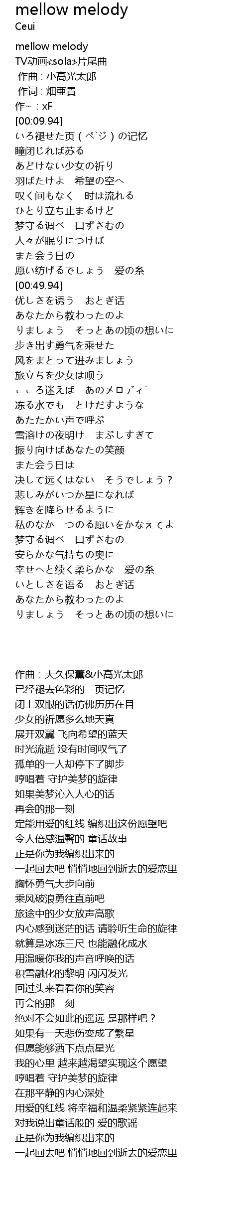 | [00:38.66] | 哼唱着 守护美梦的旋律 |