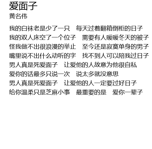 | nán rén zhēn shì sǐ ài miàn zi ràng ài tā de rén yí dìng yào guò hǎo rì zi | |