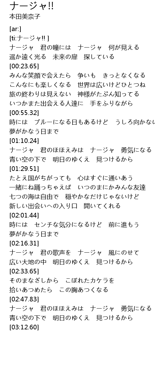 | [02:50.83] | ナージャ 君のほほえみは ナージャ 勇気になる |