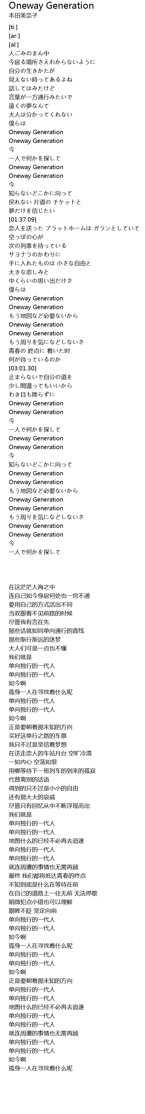 | [03:35.76] | Oneway Generation |