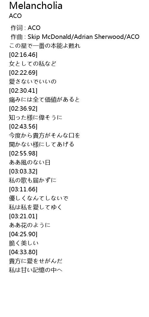 | [00:01.000] | 作曲 : Skip McDonald/Adrian Sherwood/ACO |