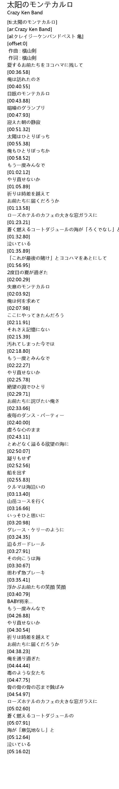 | [01:24.53] | 蒼く燃えるコートダジュールの海が「ろくでなし」と |