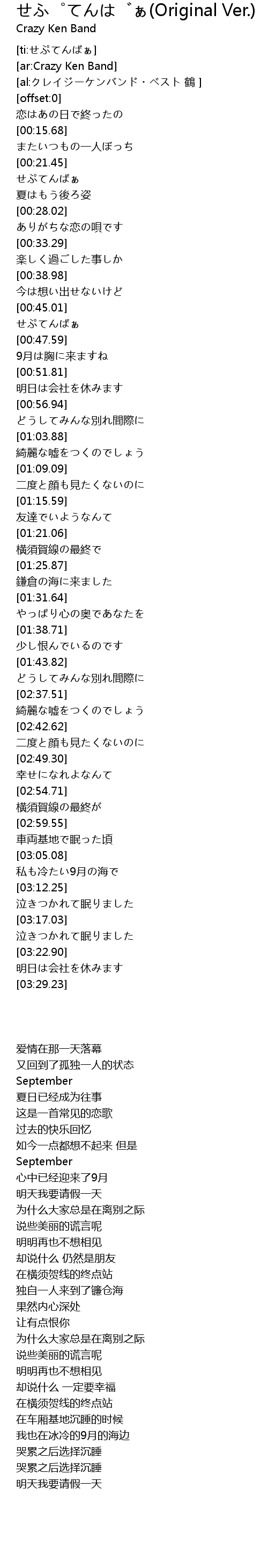 | 歌曲 | せぷてんばぁ(Original Ver.) |