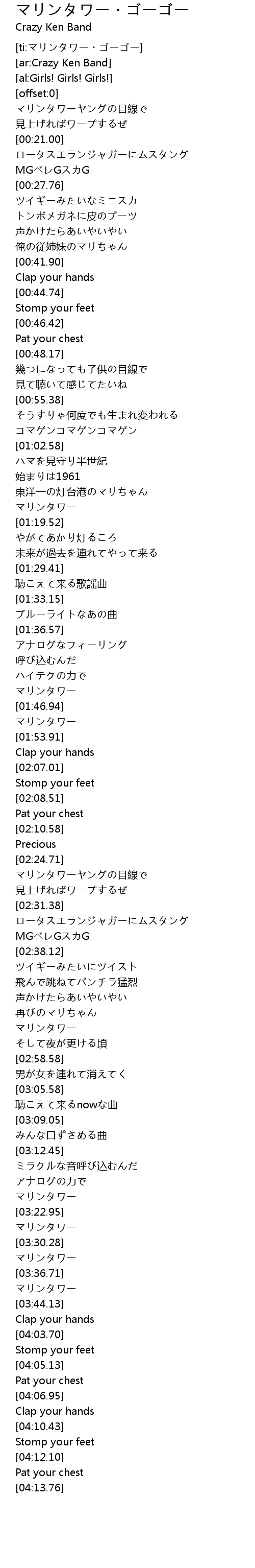 | [01:10.36] | 東洋一の灯台港のマリちゃん |