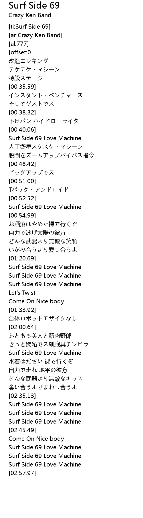 | [02:07.94] | Surf Side 69 Love Machine |