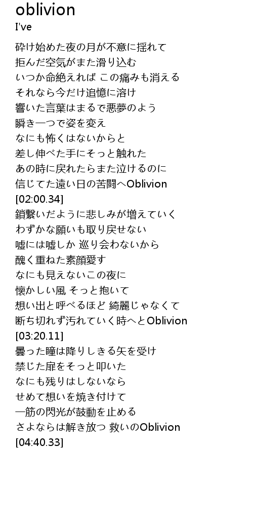 | [03:11.32] | 断ち切れず汚れていく時へとOblivion |