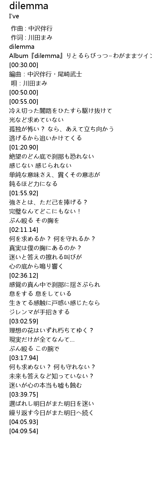 | [00:10.00] | Album『dilemma』りとるらびっつ−わがままツインテール−主題歌 |