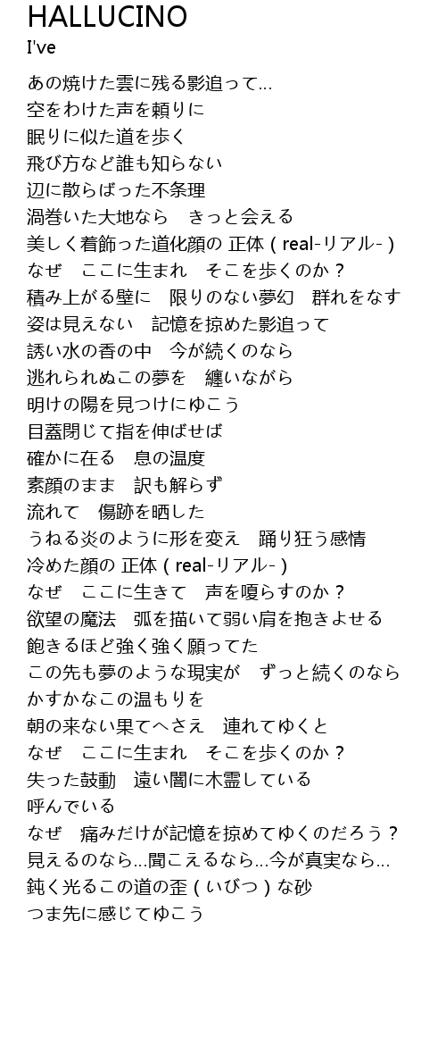 | [01:26.96] | 美しく着飾った道化顔の 正体(real-リアル-) |