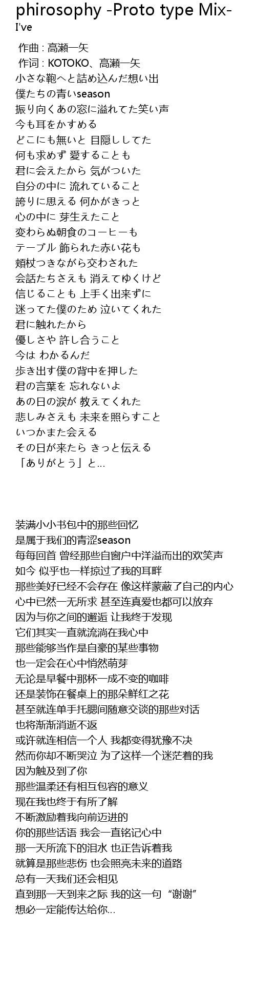 | 歌曲 | phirosophy -Proto type Mix- |