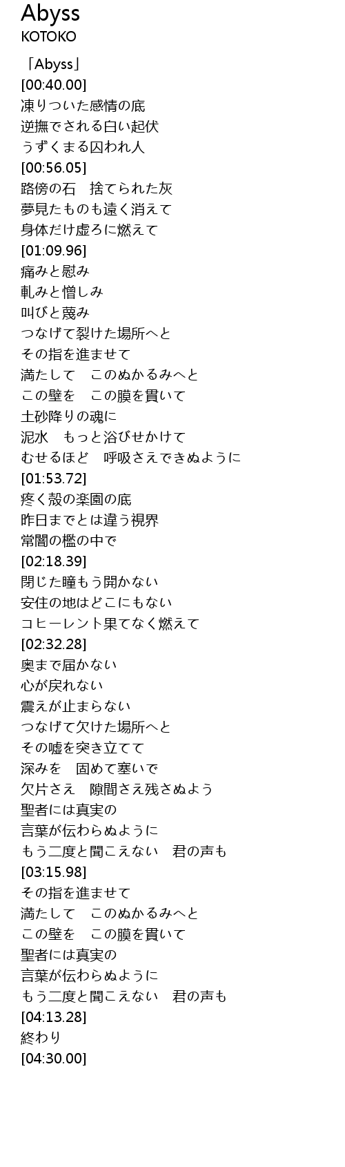 | [00:00.00] | 「Abyss」 |