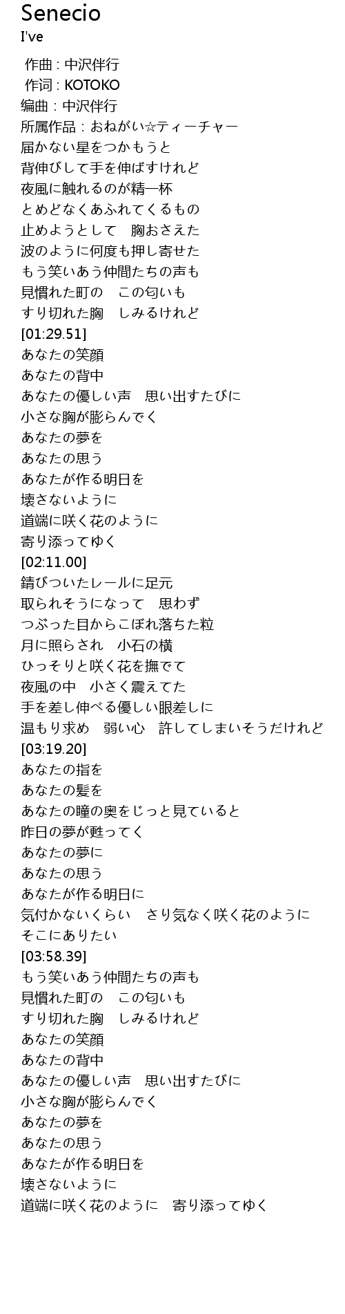 | [02:46.64] | ひっそりと咲く花を撫でて |