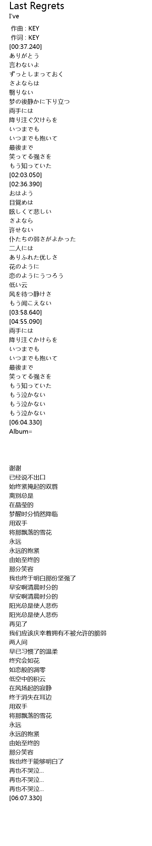 | 专辑 | I've Girls Compilation Vol.1 ~Regret~ |