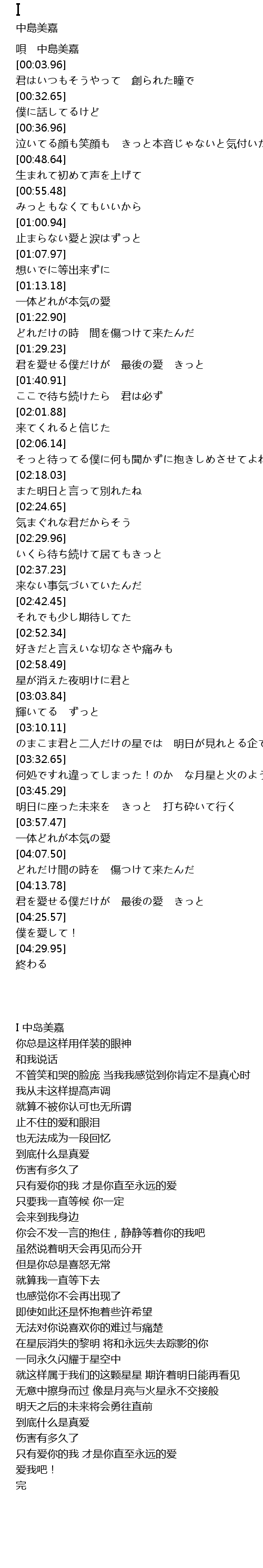 | [00:02.66] | I 中岛美嘉 |