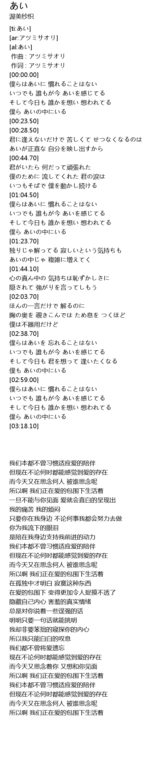 | [00:05.30] | 僕らはあいに 慣れることはない |